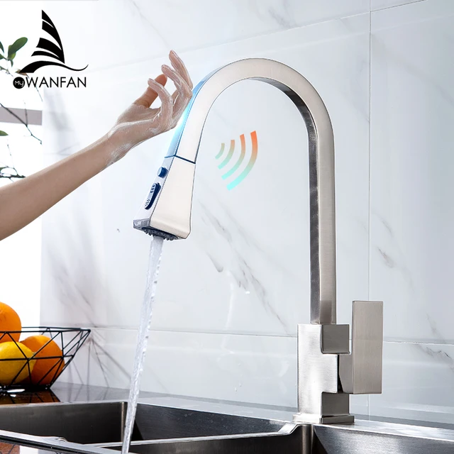Brushed Kitchen Faucet Smart Touch Kitchen Faucets Pull Out Kitchen Mixer Tap 304 Stainless Steel Sensor Kitchen Faucet KH1002