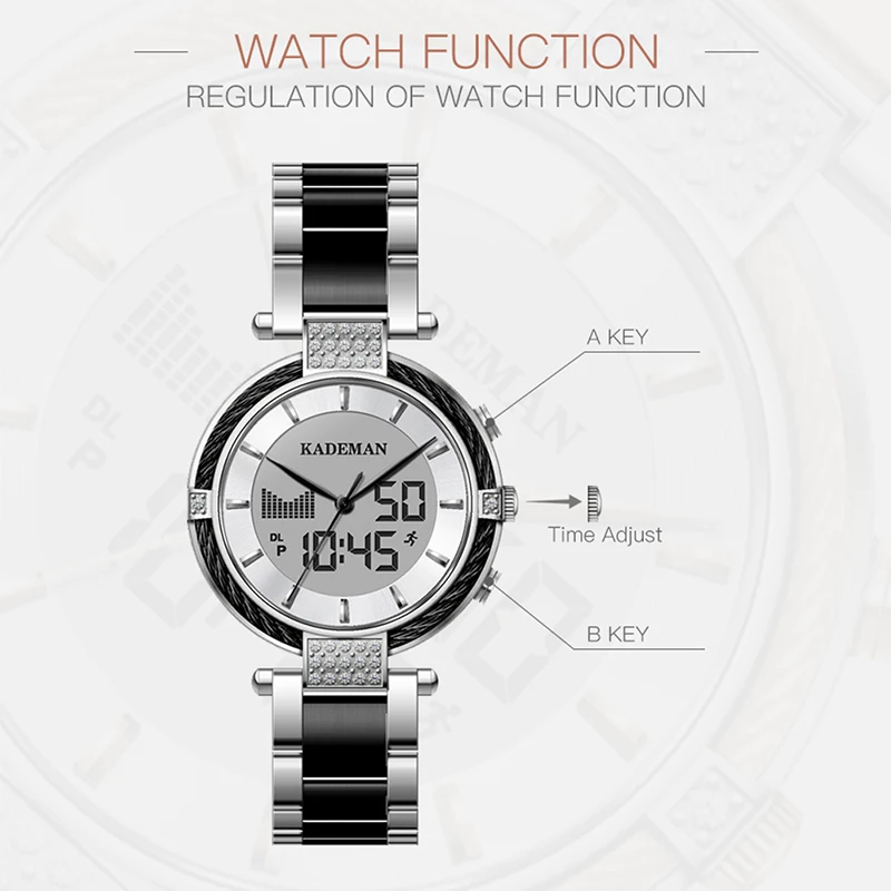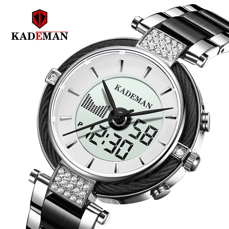 Blog New Kademan Fashion Women Watch Digital Dual Display Quartz Stainless Steel Waterproof Dress Wristw